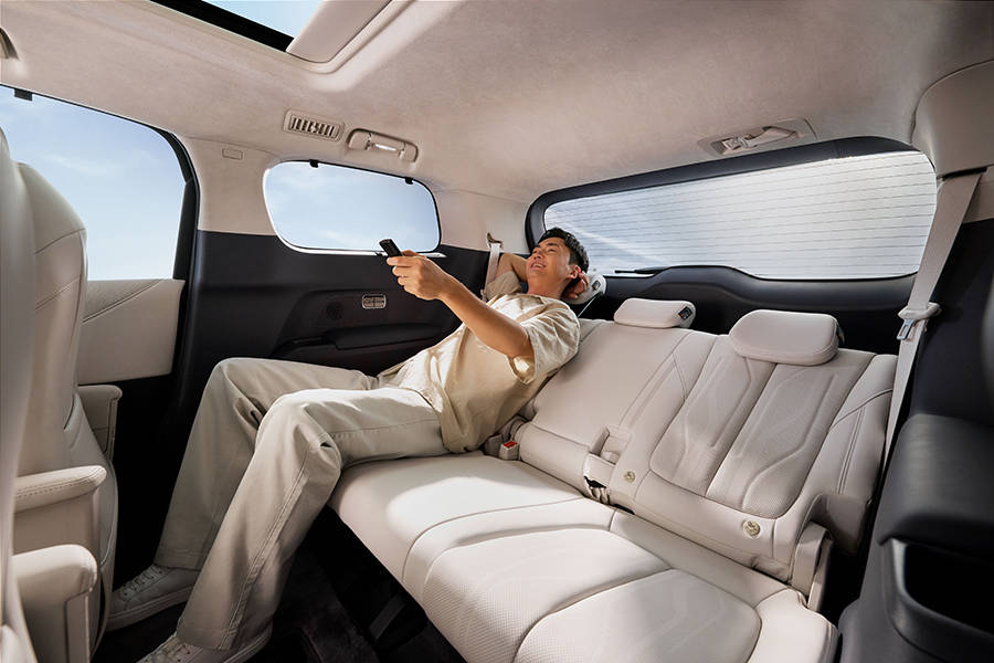 配置方面,该车配备艾维亚专属银翼礼宾光毯、星云流水礼宾音效,并引入NOP智慧领航功能,配备15.6英寸后排娱乐屏,提升驾乘感受。同时,其二排座椅全系增配320mm电动前后滑动调节;尊享版、奢享版二排座椅升级为Nappa真皮羽感头等舱座椅,可通过一键VIP功能实现的头等舱“云端模式”。同时,在原有靠背与坐垫加热的基础上,新增扶手加热和腿托加热,在-20°C低温环境下仅用不到3分钟即可升温到24℃。二排座椅也升级了增强式指压按摩,通过更高的9L/min气泵流量以及大幅优化的气袋结构。此外,全系主驾座椅新增按摩功能,电动4向腰托新增三个独立气袋并扩大支撑范围。第三排座椅不仅支持6/4分电动翻折,此次也全系新增座椅靠背180度电动调节功能。