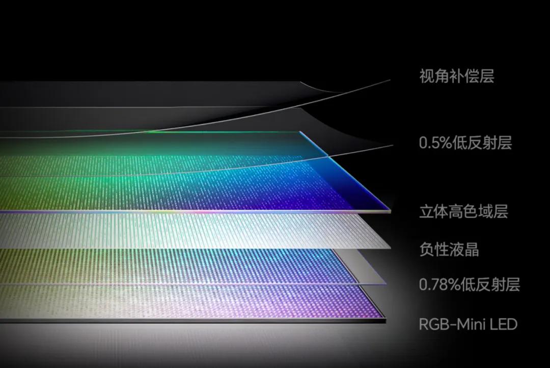 反观RGB-Mini LED,其技术核心在于每颗Mini LED灯珠都独立集成R/G/B红绿蓝三原色发光芯片,实现了真正的"光色同源"。这种架构优势体现在三个关键维度:首先,色彩纯度显著提升,避免了量子点转换过程中的光谱展宽问题;其次,亮度潜力更大,三原色独立发光使得峰值亮度可达6200nits,远超QD-OLED的技术上限;最后,使用寿命得到根本性改善,避免了QD-OLED固有的烧屏问题和亮度衰减缺陷。