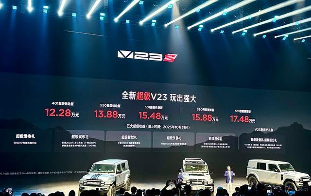 这次全新超级V23S终于迎来了上市,目前新车共推出了三款车型,售价12.28-15.48万元,有两驱和四驱可选。此外备受瞩目的赛博版,这次也一同上市,赛博版两驱型售价15.88万元,赛博版四驱型售价17.48万元。更是进一步提升了这台车的玩乐属性,今天AM车镜就简单介绍一下,这次新车究竟哪里“超级”,在同价位中又有哪些优势。