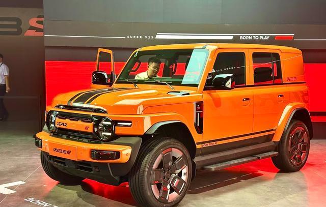 首先新车的外观改动变化不是很大,因为本身V23系列车型的定义就几乎接近于一个DIY平台。方头方脑的方盒子造型,配上四轮四角的设计,本身给人的视觉冲击力就很强。而为了突显“超级”的不同盈富忧配,新车在车灯之间的装饰板上,刻有一个醒目的橙色“S”字样,此外上面三个进气扁口的位置,也采用了橙色装饰线。